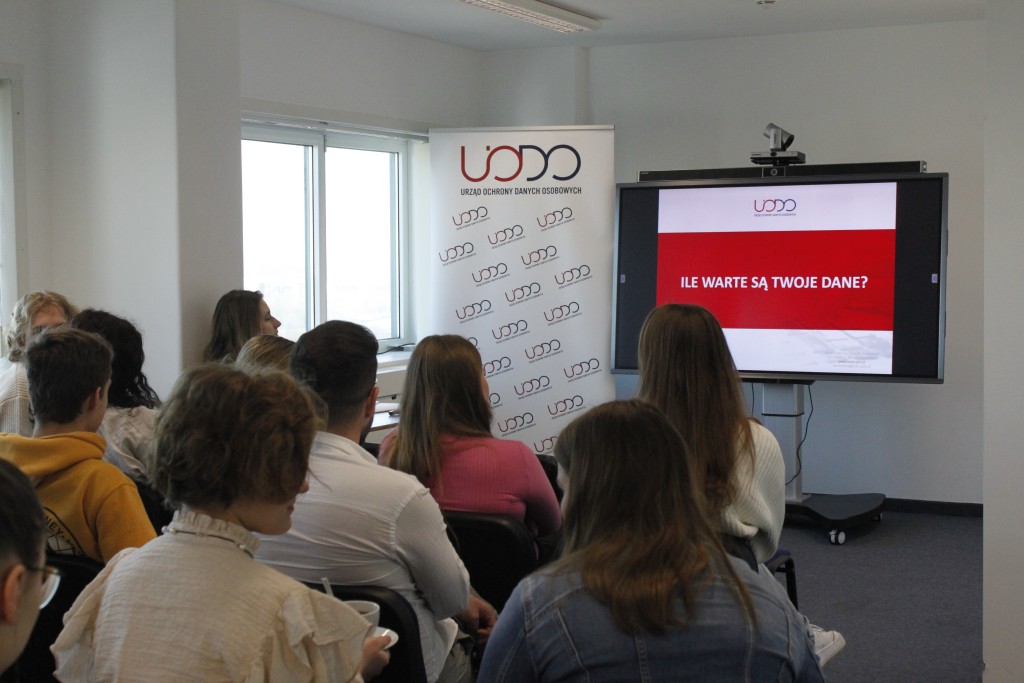 Uczniowie jednego z warszawskich liceów ogólnokształcących spotkali się 16 marca 2023 r. z Jakubem Groszkowskim, Zastępcą Prezesa UODO oraz uczestniczyli w zajęciach edukacyjnych pt. „Ile warte są Twoje dane? Kilka słów o wyzwaniach związanych z monetyzacją”.