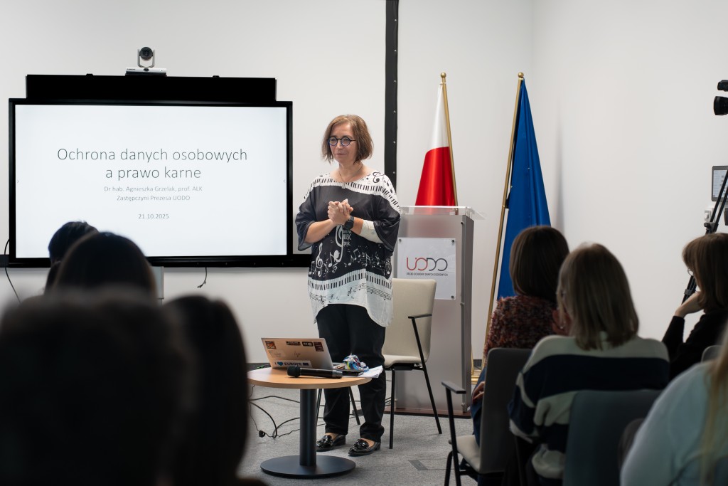 „Spotkania z młodymi ludźmi to dla nas ważny element działalności edukacyjnej Urzędu. Zależy nam, by przyszli prawnicy już na etapie studiów rozumieli znaczenie ochrony danych osobowych jako jednej z podstawowych wartości demokratycznego prawa.” – podkreśliła Agnieszka Grzelak zastępczyni Prezesa UODO. Dodała, że ochrona danych osobowych w pracy organów ścigania i służb zajmujących się zwalczaniem przestępczości służyć ma budowaniu zaufania obywateli do instytucji państwa i chronić ich przed nadużyciami władzy, ale jednocześnie chronić państwo przed istniejącymi zagrożeniami dla jego bezpieczeństwa.