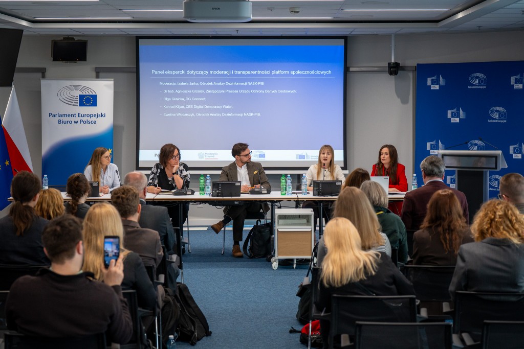 Uczestnicy panelu podkreślali znaczenie przejrzystości działań platform społecznościowych oraz skutecznych mechanizmów reagowania na treści wprowadzające w błąd.