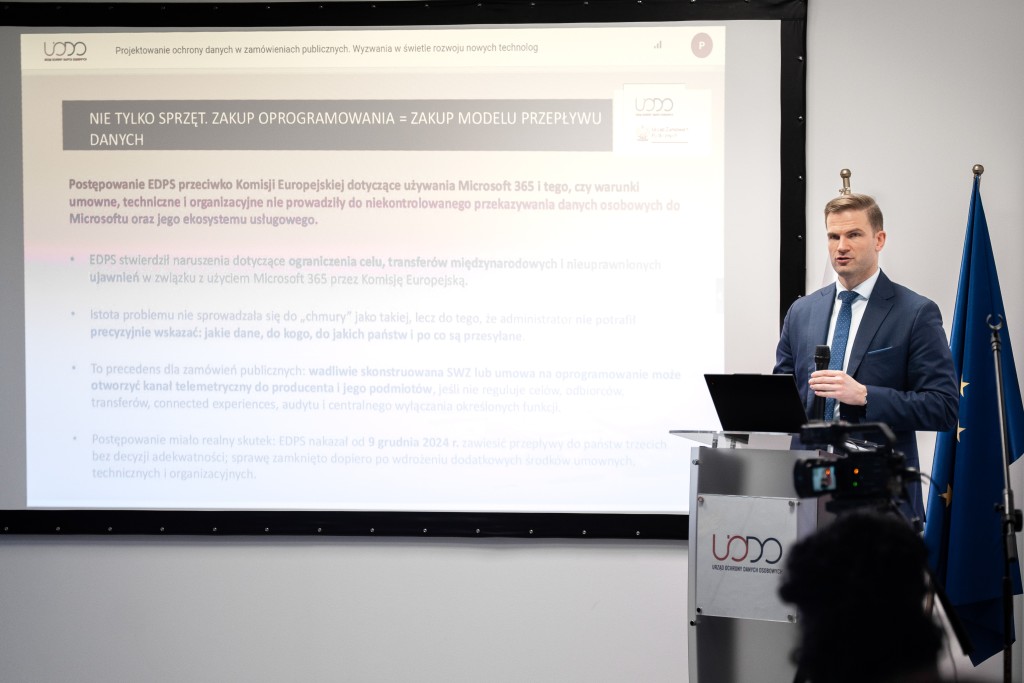 Wydarzenie otworzył prezes UODO Mirosław Wróblewski. Jak zwrócił uwagę, zamówienia publiczne nie są dziś zagadnieniem dotyczącym jedynie dziedziny finansów, ale są również tym obszarem, w którym przetwarzane są coraz większe ilości danych osobowych. Według prezesa Urzędu ochrona danych jest zatem całym rozbudowanym procesem związanym z odpowiedzialnością i ze świadomością ryzyka, niezależnie od tego, z której strony spojrzymy na ten proces – od strony zamawiającego czy wykonawcy. Prezes Mirosław Wróblewski zaznaczył również, że dzisiaj bezpieczeństwo działania państwa w dużej mierze opiera się na kulturze zarządzania ryzykiem.