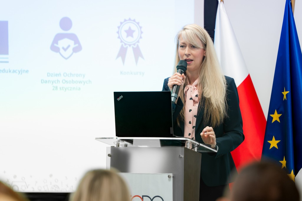 Drugi dzień konferencji otworzyła dr hab. Agnieszka Grzelak prof. ALK, zastępczyni Prezesa UODO, która podkreśliła znaczenie równowagi między rozwojem technologicznym a prawem do prywatności. „Sztuczna inteligencja to ogromna szansa dla edukacji, ale też test naszej odpowiedzialności. Wychowując młode pokolenie w świecie cyfrowym, musimy pokazywać, że prywatność to nie przeszkoda, ale wartość, którą warto chronić” – powiedziała zastępczyni Prezesa UODO. W swoim wystąpieniu zwróciła uwagę, że szkoły uczestniczące w programie UODO stają się nieformalnymi ambasadorami ochrony danych w lokalnych społecznościach.