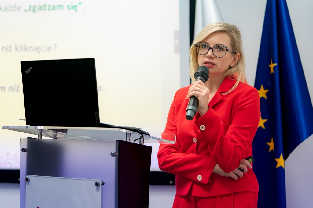 Ważnym punktem programu konferencji było wystąpienie przedstawicielek Departamentu Inicjatyw Edukacyjnych, który odpowiada za organizację działań w ramach programu „Twoje dane – Twoja sprawa”. Anna Dudkowska dyrektor Departamentu Inicjatyw Edukacyjnych UODO oraz Marta Mikołajczyk, koordynatorka programu przedstawiły założenia, plany bieżącej edycji oraz możliwe kierunki realizacji. Podkreśliły, że skuteczna edukacja o ochronie danych osobowych i prywatności dzieci wymaga przede wszystkim zaangażowania dorosłych – ich motywacji, świadomości i odpowiedzialności. Bez aktywnego udziału nauczycieli, rodziców i opiekunów nie sposób budować trwałych postaw cyfrowej odpowiedzialności. Anna Dudkowska zaznaczyła, że „temat ochrony danych osobowych może być omawiany na każdym przedmiocie w szkolnej edukacji – od języka polskiego po matematykę czy wf – oraz w ramach działań profilaktycznych. W dobie dynamicznego rozwoju technologii cyfrowych jest to nie tylko możliwe, ale konieczne”. Marta Mikołajczyk z kolei zwróciła uwagę na znaczenie inspiracji w działaniach edukacyjnych, wskazując, że ochrona danych nie powinna wynikać z lęku czy desperacji, z powodu naruszeń prywatności lecz z wewnętrznej potrzeby troski o siebie i innych.