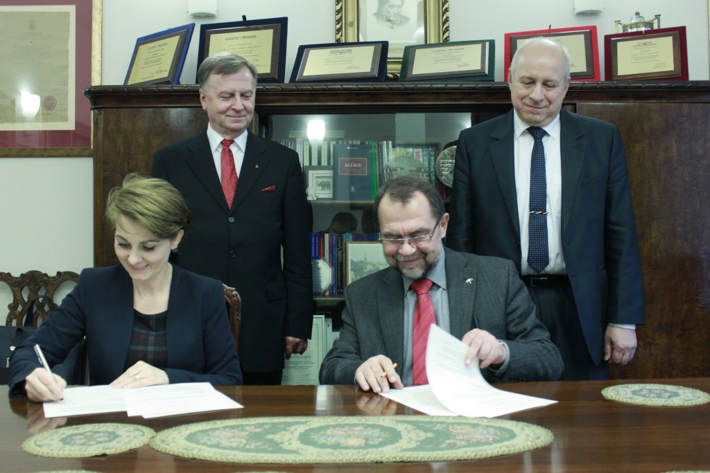 Porozumienie zostało zawarte 5 listopada 2015 r. Podpisała je dr Edyta Bielak-Jomaa, Generalny Inspektor Ochrony Danych Osobowych (GIODO) oraz prof. dr hab. Krzysztof Rączka, Dziekan Wydziału Prawa i Administracji. Podczas uroczystości obecni byli także minister Andrzej Lewiński, zastępca GIODO oraz prof. dr hab. Tomasz Giaro, Prodziekan ds. współpracy z zagranicą i kadry naukowej.